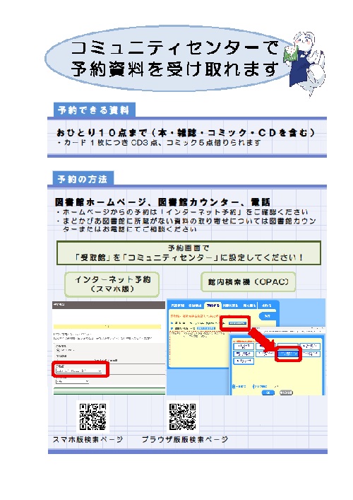 ※インターネットでの予約は、予約画面で「受取館」を「コミュニティセンター」に設定してください