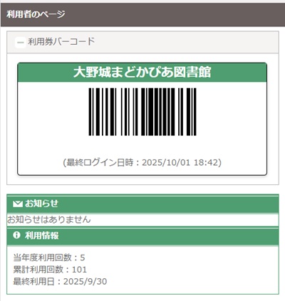 - 利用者カードに記載されているバーコードの数字7桁が、個人の「利用者番号」です